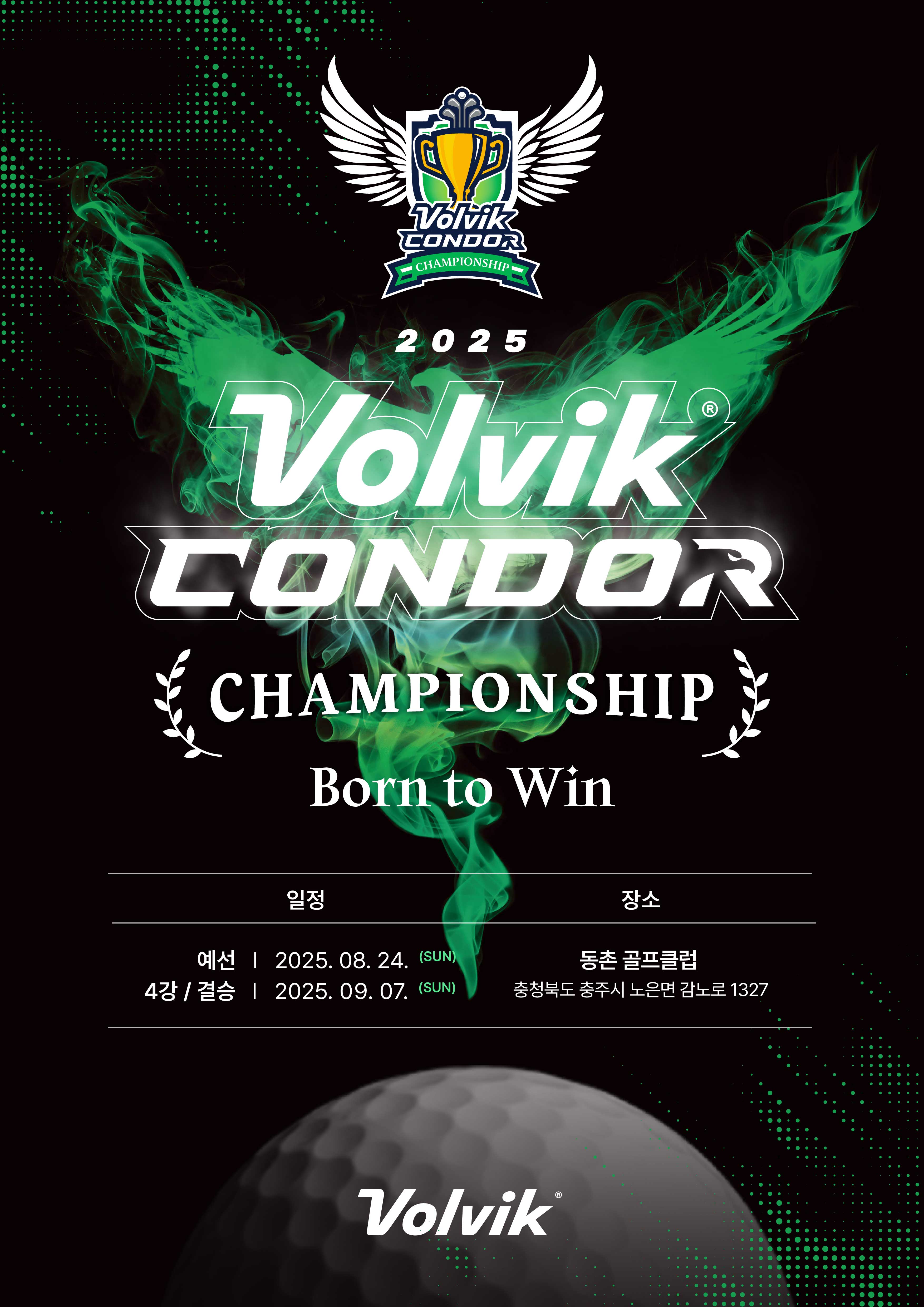 국산 골프 브랜드 볼빅(대표 홍승석)이 대한민국을 대표하는 아마추어 골퍼와 프로가 한 자리에 모여 최강팀을 가리는 2025 Volvik CONDOR Championship’을 개최한다. 이번 대회는 8월24일 디비전별 예선을 거쳐 9월7일에 4강전 및 결승전을 펼친다.